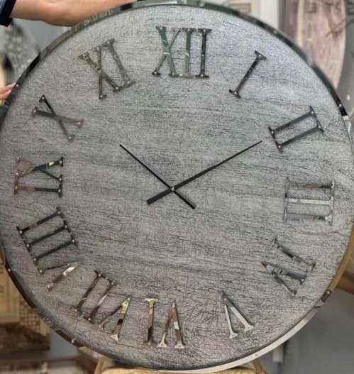 جنس کار فلز با اعداد و نوار دوبل استیل وارداتی، رنگ استاتیک که با پتینه کاری نقره ای انجام شده است. موتور ساعت تایوان بیصدا و آرامگرد با گارانتی 5 ساله میباشد.